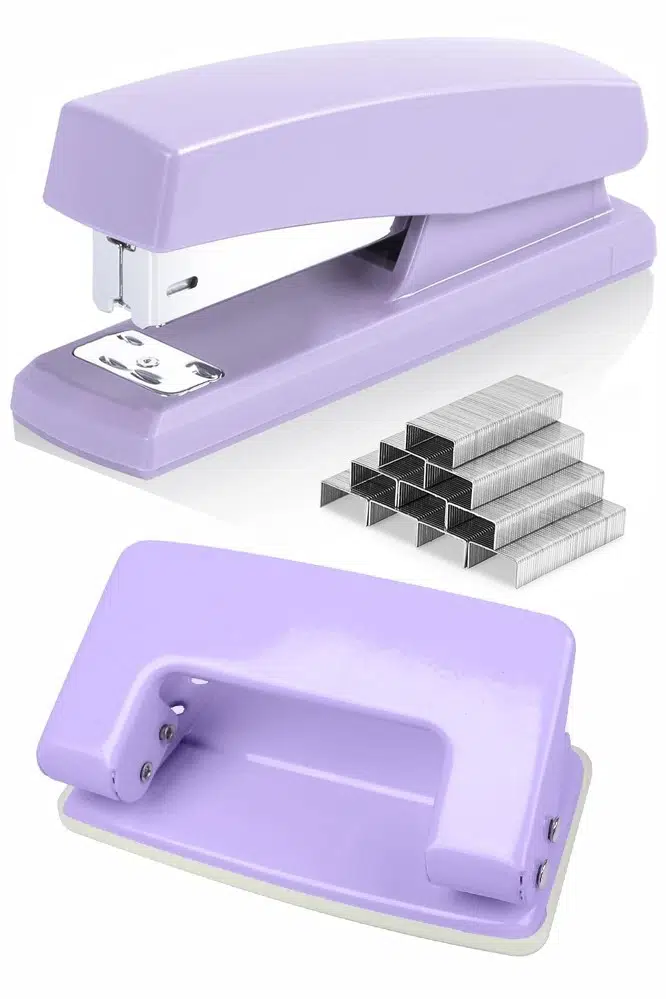 Ürün Adı: Artmaster Lila Zımba Makinesi No:10 ve Delgeç 1 Adet Küçük Zımba Makinası ve Teli Kağıt Delgeci Perfaratör Büro Ofis Okul