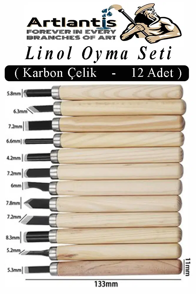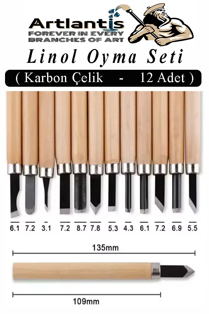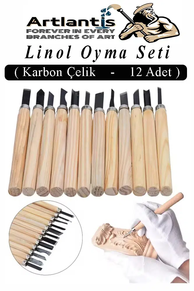 Ürün Adı: Linol Oyma Seti 12 Parça 1 Paket Linol Oyma Kesme Bıçak Seti 12 Bıçaklı Linolyum Baskı Ahşap Saplı