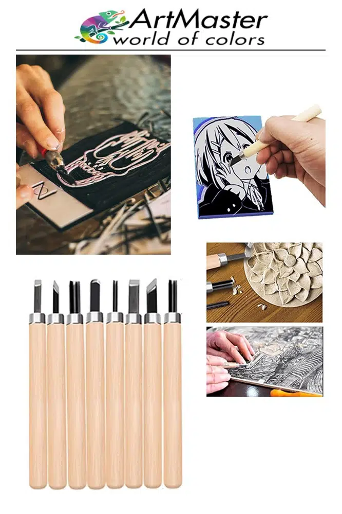 Özellikler: Kendi baskı bloklarınızı ve lastik damgalarınızı yapmak için lino kesme ve oyma aletleri seti Ahşap sap yaklaşık 8,5 cm uzunluğundadır