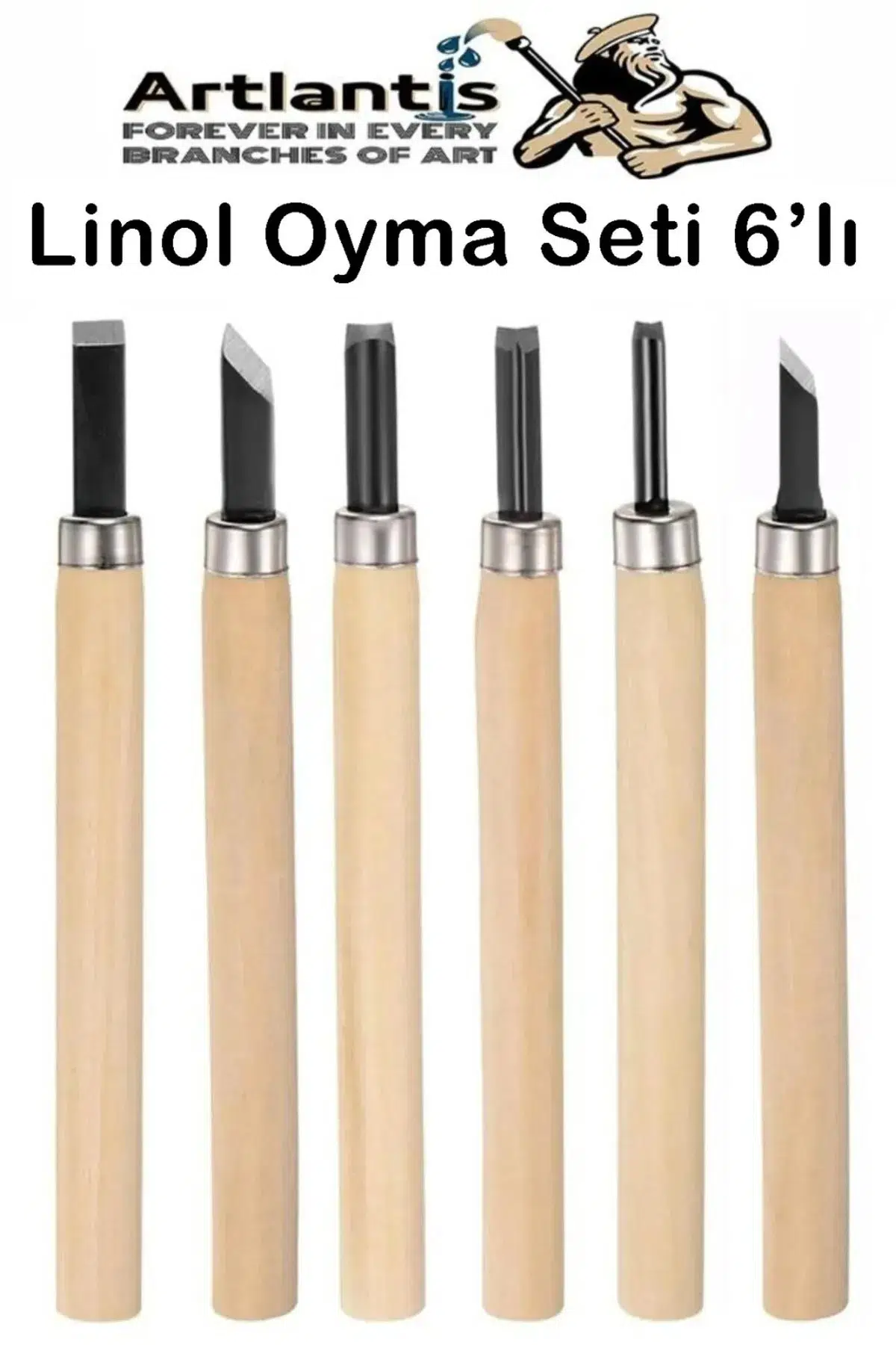 Ürün Adı: Linol Oyma Seti 6 Parça 1 Paket Kretuar Bıçağı Linol Oyma Kesme Bıçak Seti 6 Bıçaklı Linolyum Baskı Ahşap Saplı
