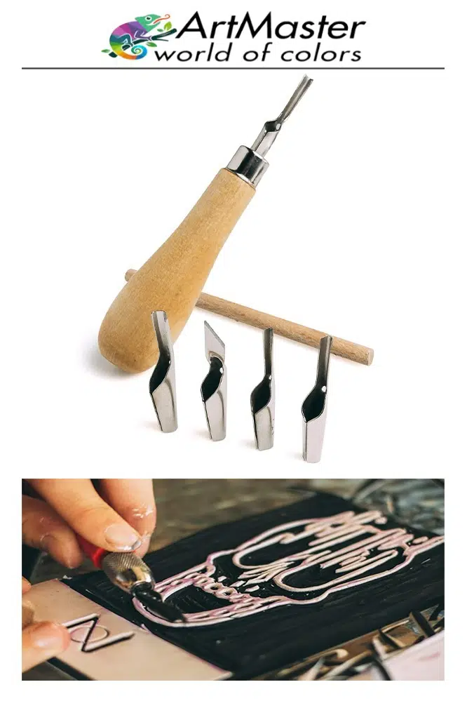 Ürün Adı: ArtMaster Linol Oyma Seti 7 Parça 1 Paket Linol Oyma Kesme Bıçak Seti 5 Bıçaklı Linolyum Baskı Ahşap Saplı