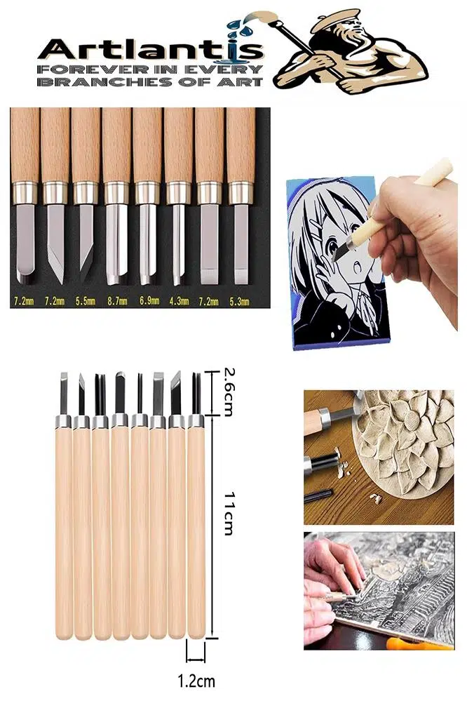 Özellikler: Kendi baskı bloklarınızı ve lastik damgalarınızı yapmak için lino kesme ve oyma aletleri seti Ahşap sap yaklaşık 8,5 cm uzunluğundadır