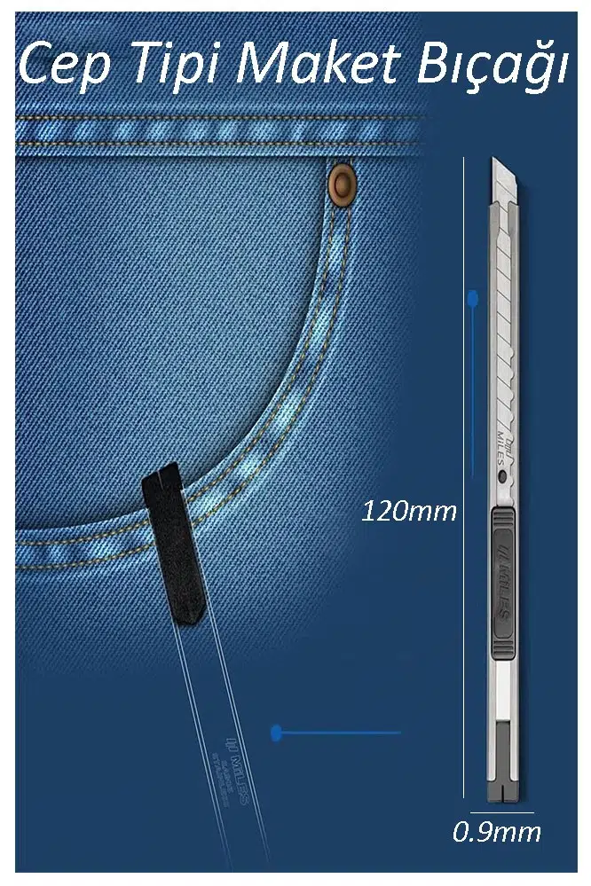 ·Çok Amaçlı Metal Maket Bıçağı 9mm Cep Boy Paslanmaz Falçata