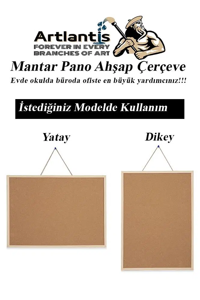 Ürün Adı: Artlantis Mantar Pano Ahşap Çerçeve 45x60 cm 1 Adet Harita Çivisi Hediyeli