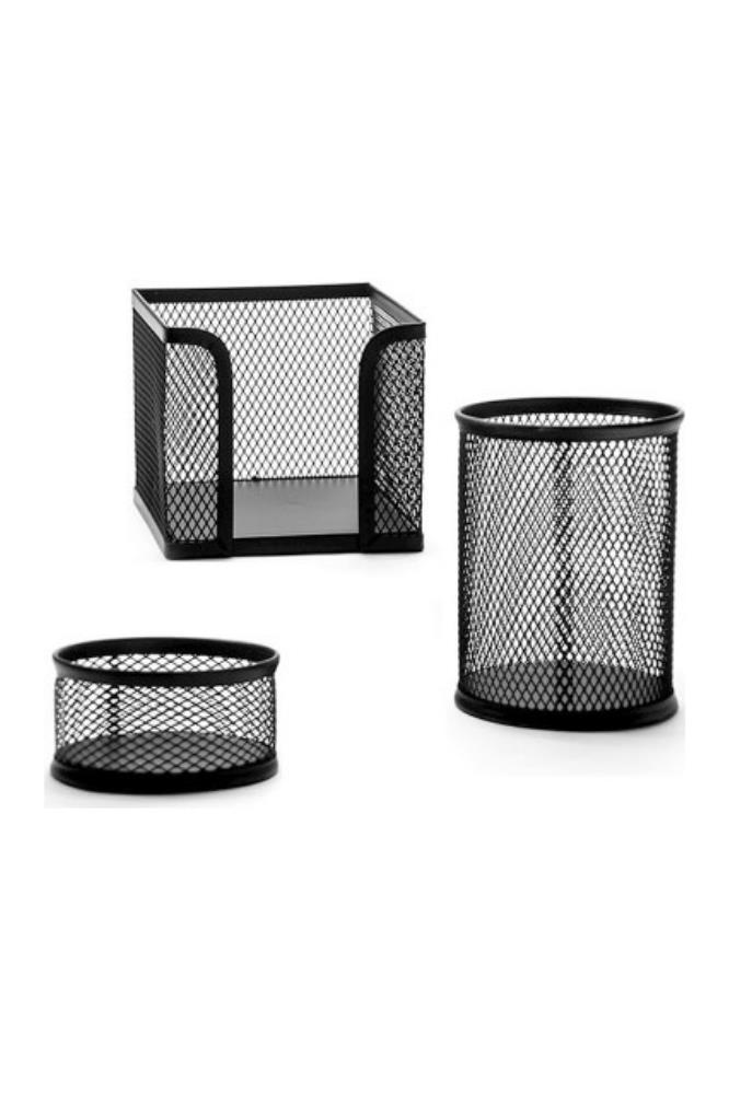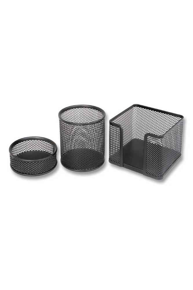 EtiketlerMasa Üstü Metal Fileli Kalemlik 3'Lü Perfore Drt Metal Masa Seti Siyah Renk Kalemlik 1 Adet