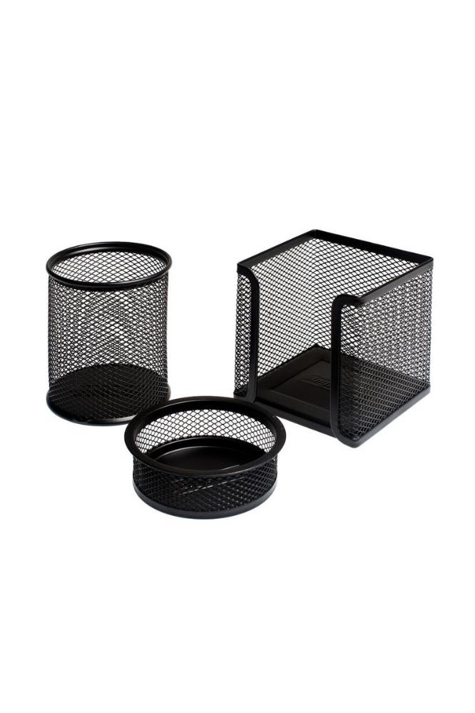 Masa Üstü Metal Fileli Kalemlik 3`Lü Perfore Drt Metal Masa Seti Siyah Renk Kalemlik 1 Adet