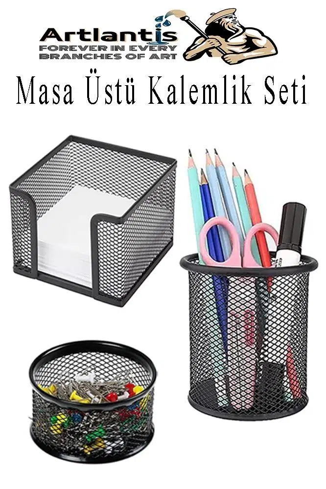 | Etiketler | Masa Üstü Siyah Fileli Kalemlik Seti 3 Parça 1 Paket 3 lü Masa Üstü Düzenleyici Kalemlik Küp Notluk Ataşlık |