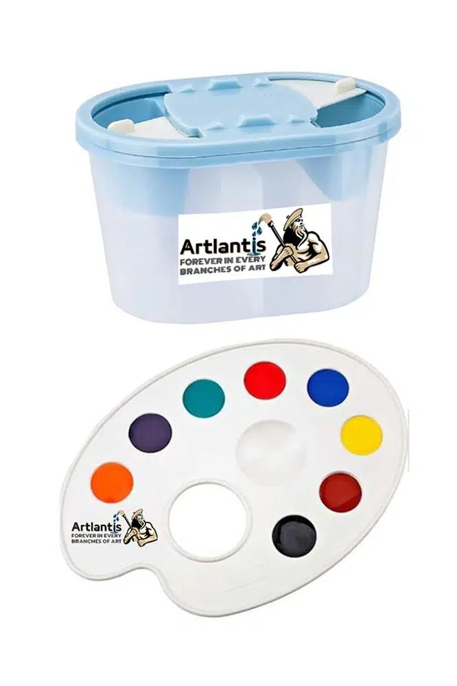 - Artlantis resim paleti, fırça temizleme kabı ve 4 adet ponpon fırça seti