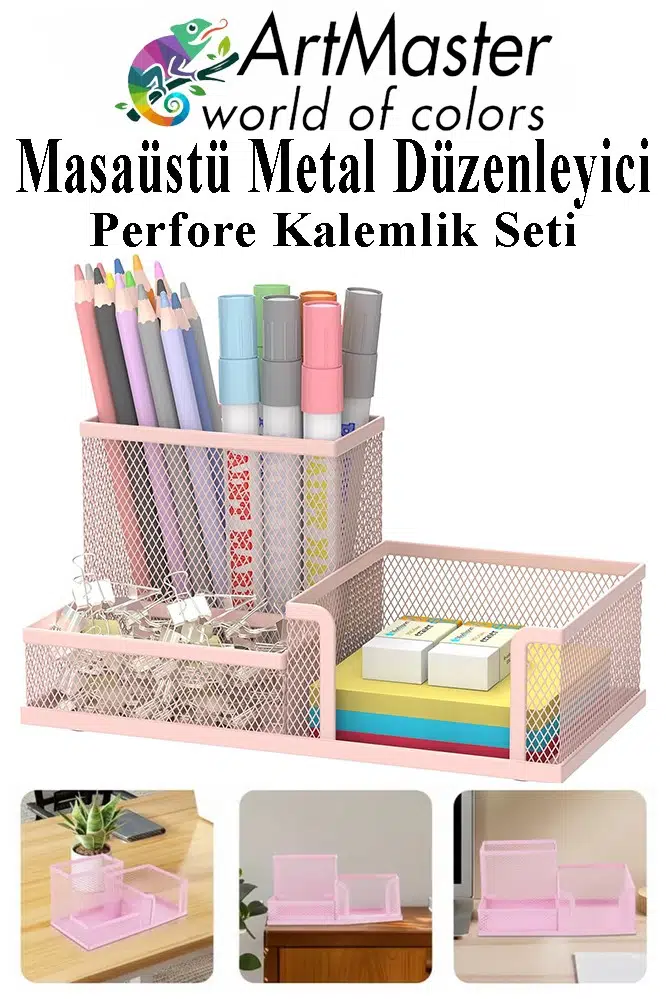 | Etiketler | Masaüstü Metal Kalemlik Seti 3 lü Kombo Açık Pembe 1 Paket Fileli Perfore Kalemlik Kağıtlık Küpnotluk Düzenleyici |