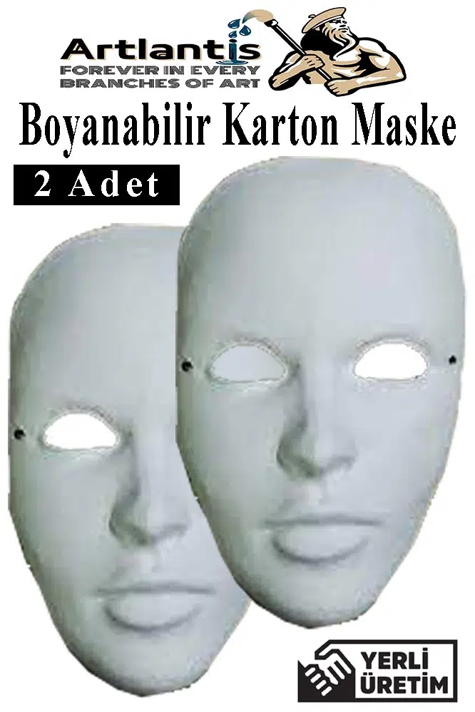 Ürün Adı: Artlantis Maske Boyama 2 Adet Boyanabilir Karton Maske Lastikli İnsan Yüzü Suratı Yerli Üretim Okul Sınıf Etkinlikleri Hobi