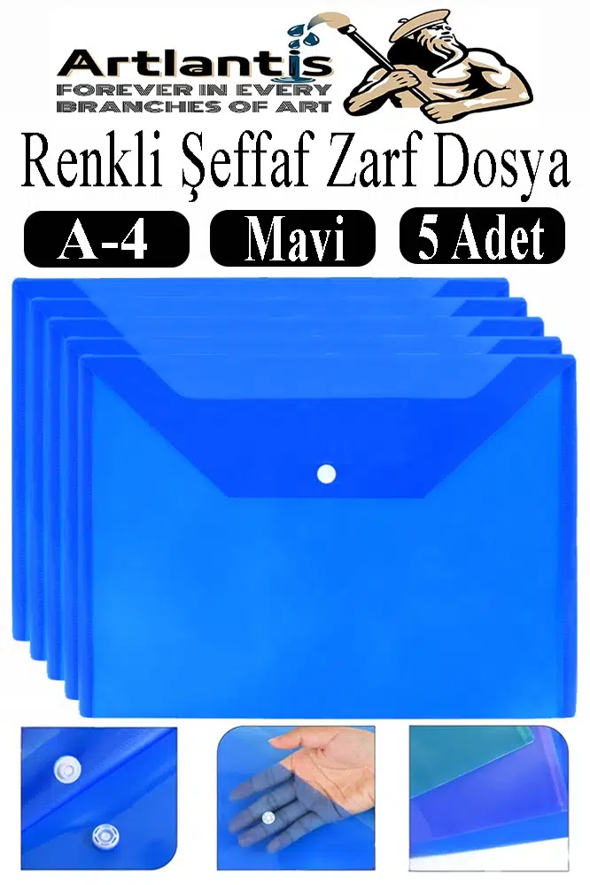 Ürün Adı: Mavi A4 Çıtçıtlı Dosya Şeffaf Renkli Zarf Dosya 5 Adet Çıt Çıtlı Dosya Su Geçirmez 100 Yaprak Kapasite