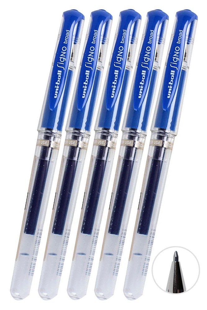 Ürün Adı: Mavi İmza Kalemi 5 Adet Uniball Signo Broad 1.0 mm Roller Pilot Kalem Um-153 Roller Uçlu Likit Mürekkepli Pilot Kalem