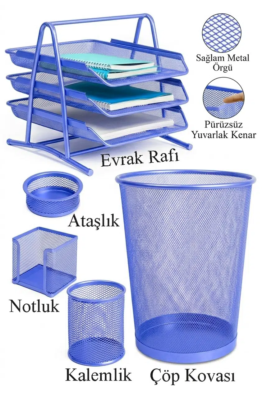 | Etiketler | Mavi Metal Evrak Rafı 3 lü Masaüstü Kalemlik 3 lü ve Fileli Çöp Kovası 1 Paket Masaüstü A4 Dosya Düzenleyici Not |