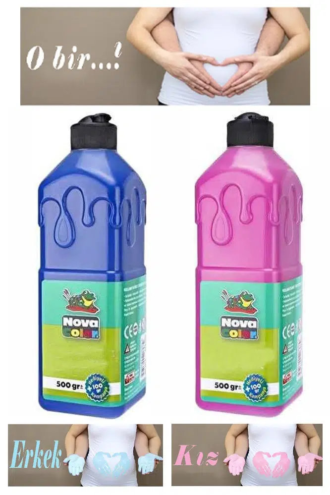 Ürün Adı: Mavi Pembe Cinsiyet Belirleme Parmak Boyası 1 Adet 500 ml Kız Cinsiyet Açıklama Boyası Yıkanabilir Nova Color Zararsız