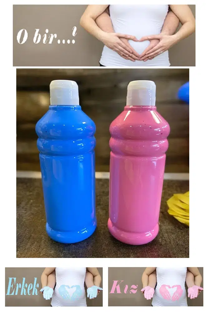 Ürün Adı: Mavi Pembe Cinsiyet Belirleme Parmak Boyası 1 Adet 500 ml Kız Cinsiyet Açıklama Boyası Yıkanabilir Zararsız