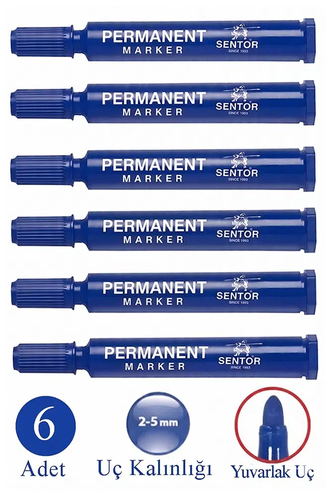| Etiketler | Mavi Permanent Markör Kalem Yuvarlak Uç 6 Adet Sentör Kalıcı Marker Kalem Tüm Koli Karton Çuval Cam Plastik Yüzeylerde |