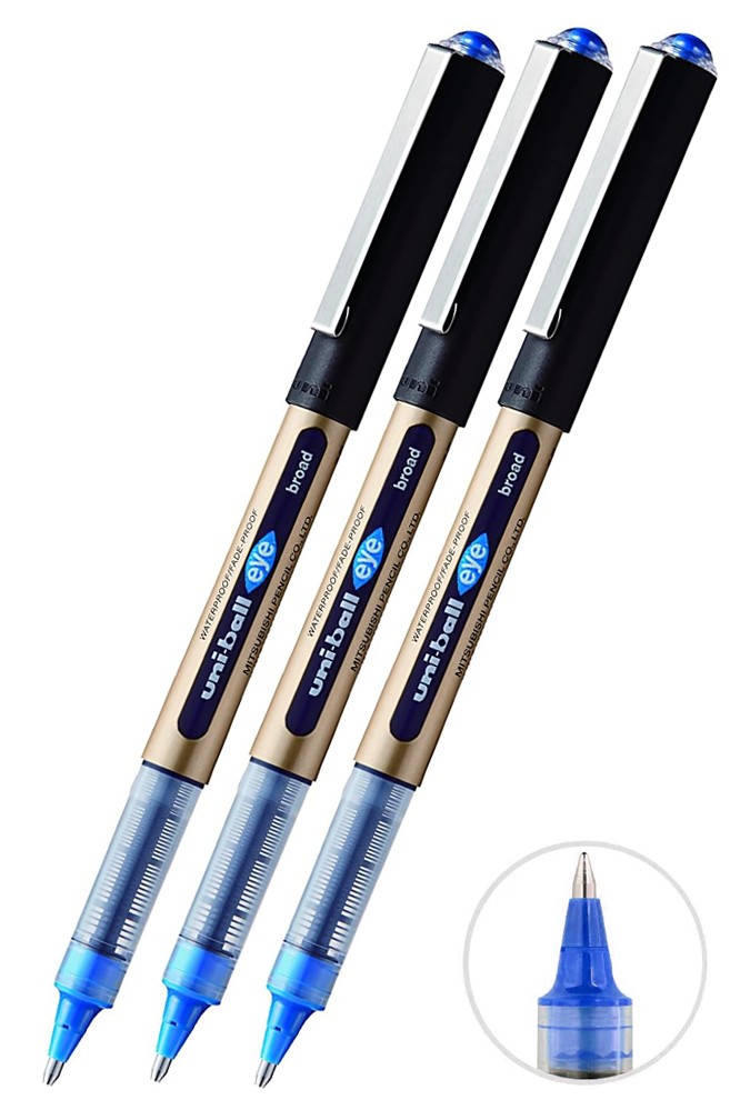 Ürün Adı: Mavi Pilot Kalem 3 Adet Uniball Eye Broad 1.0 mm Roller Pilot Kalem Ub-150-10 Roller Uçlu Likit Mürekkepli