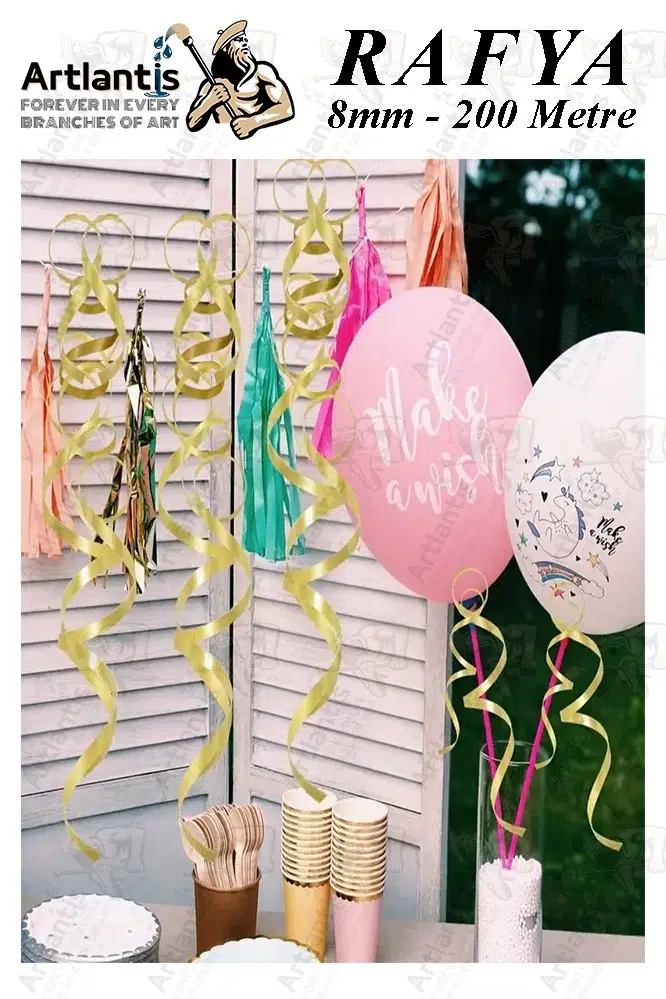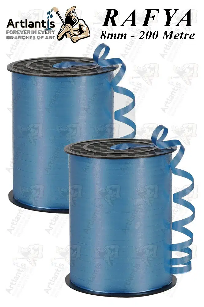 Ürün Adı: Mavi Rafya Şerit Kurdela 2 Adet 8mm 200 Metre Rabant Rafya Renkli Hediye Paketleme İpi Kurdela Balon Bağlama Ponpon
