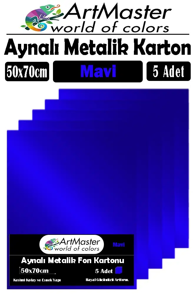 Ürün Adı: Artmaster Mavi Renkli 50x70 Metalik Aynalı Fon Kartonu 5 Adet 1 Paket ArtMaster Metalik Aynalı Fon Kartonu