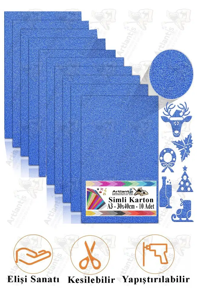 | Etiketler | Mavi Simli Karton A3 30x40 cm 10 lu 1 Paket Simli Fon Kartonu Parıltılı Kağıt Anasınıfı Kreş Etkinlik Proje |