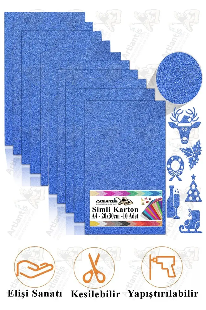 | Etiketler | Mavi Simli Karton A4 20x30 cm 10 lu 1 Paket Simli Fon Kartonu Parıltılı Kağıt Anasınıfı Kreş Etkinlik Proje |