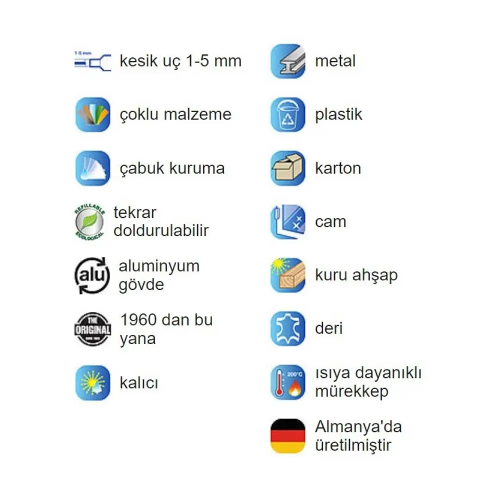 | Etiketler | Mavi Siyah Kırmızı Koli Çuval Permanent Marker Kalemi Kesik Uç 1 Adet Edding Plastik Metal Cam Yüzeye Yazabilen Kalem 1 Adet |