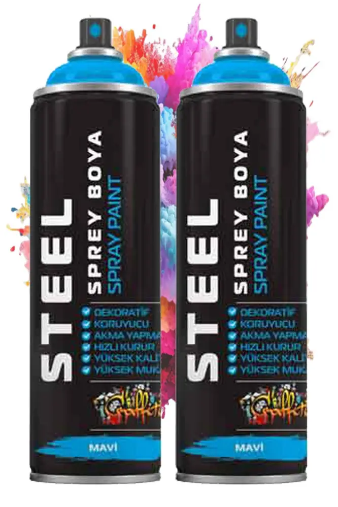 Ürün Adı: Mavi Sprey Boya 200 ml 2 Adet Hızlı Kuruyan Profesyonel Ahşap Plastik Demir Metal Cam Porselen Duvar Renkli