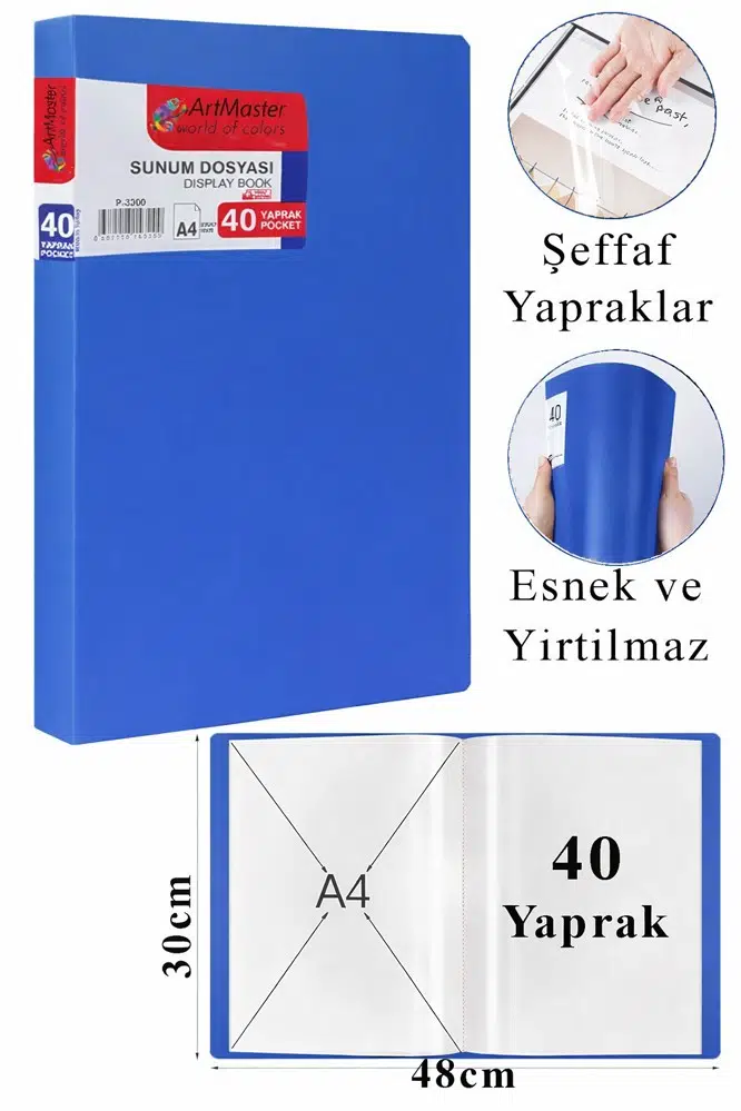 Ürün Adı: Artmaster Mavi Sunum Dosyası 40 lı 1 Adet Poşet Dosyalı Katalog Dosyası 40 Poşetli Kendinden Dosya Plastik Kapaklı
