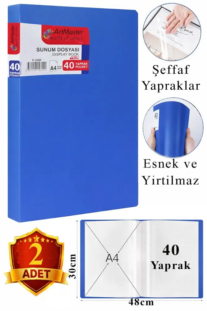 | Etiketler | Mavi Sunum Dosyası 40 lı 2 Adet Poşet Dosyalı Katalog Dosyası 40 Poşetli Kendinden Dosya Plastik Kapaklı |