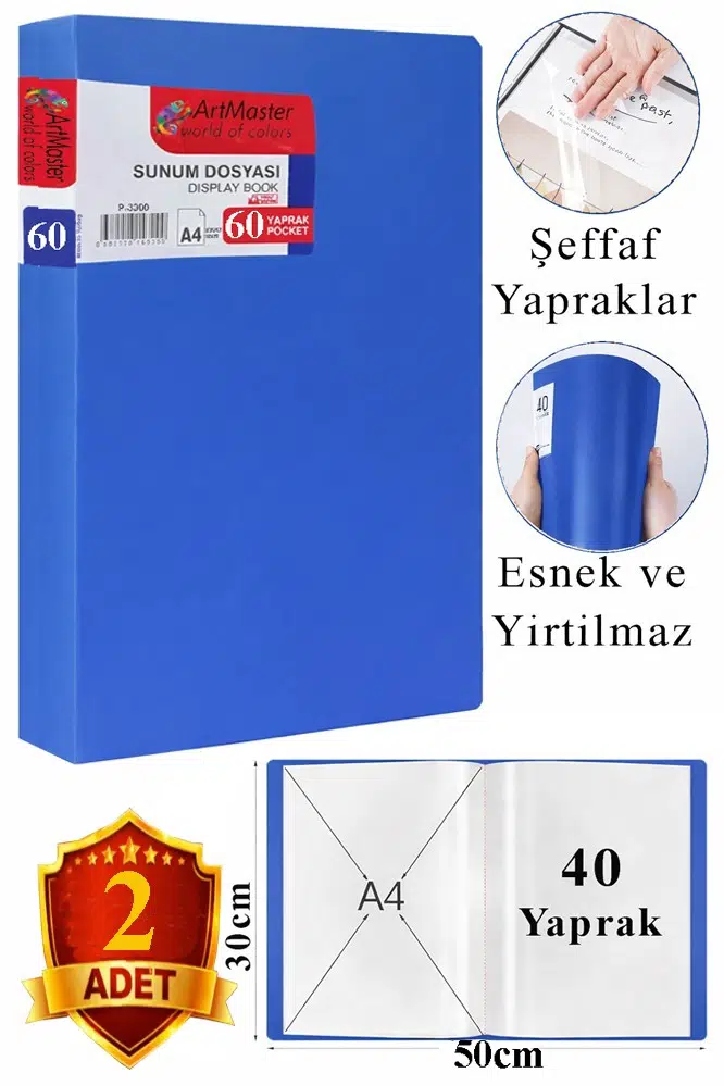 | Etiketler | Mavi Sunum Dosyası 60 lı 2 Adet Poşet Dosyalı Katalog Dosyası 60 Poşetli Kendinden Dosya Plastik Kapaklı |