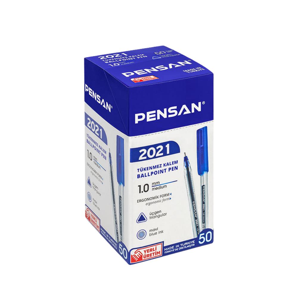 Ürün Adı: Mavi Tükenmez Kalem Pensan 2021 Şeffaf Üçgen Gövde 1.0 mm 50 adet
