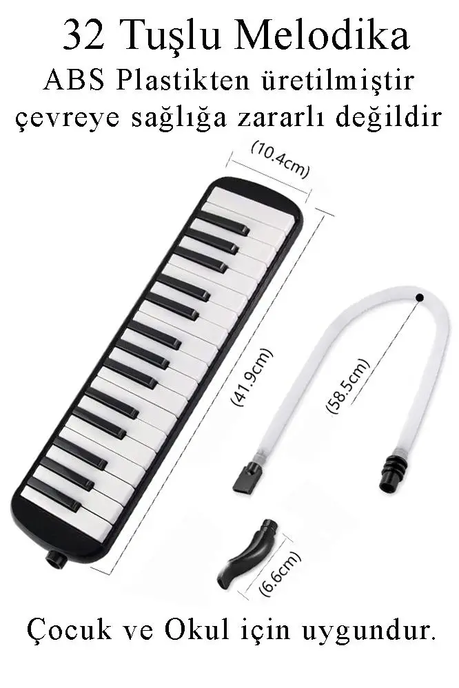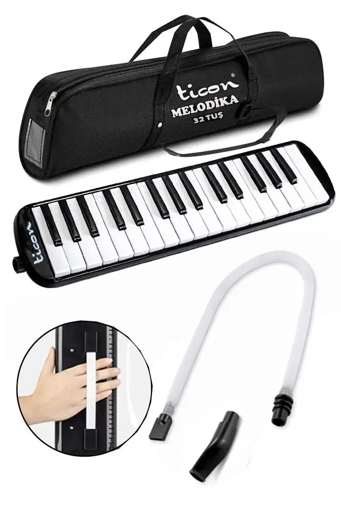 EtiketlerMelodika 32 Tuşlu Siyah Bez Çantalı 1 Adet 32K Hortumlu Melodika Askılı Taşıma Kulplu Okul Öğrenci