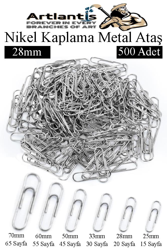 Ürün Adı: Metal Ataş No 3 28mm 500 lü 1 Paket Nikel Kaplama Metal Ataç Dayanıklı Paslanmaz 20 Sayfa Kapasiteli Ofis Okul Büro