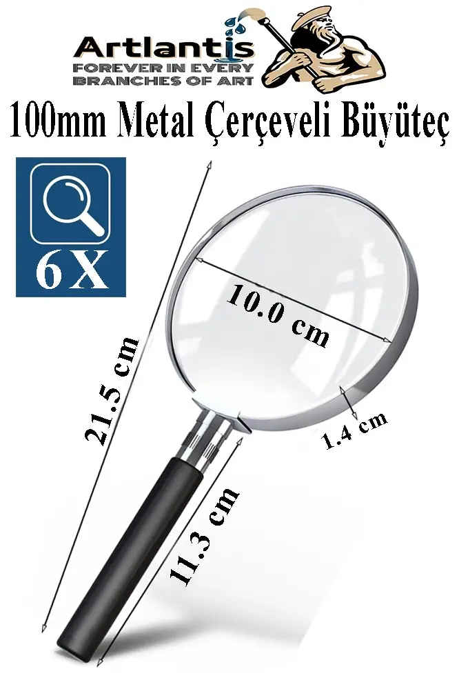 Ürün Adı: Metal Büyüteç 100 mm 1 Adet 6x Plastik Sap Çerçeveli 10 cm Büyüteç Merçek Okul Büro Ofis Krom Kaplama Büyüteç