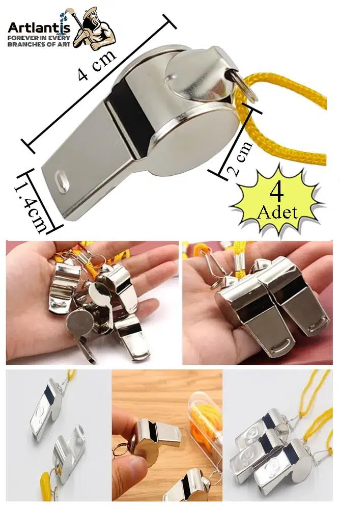 | Etiketler | Metal Düdük 4 Adet Kaliteli İpli Paslanmaz Metal Deprem Düdügü Hakem Bekçi Can Kurtaran Düdük Yüksek Desibel |