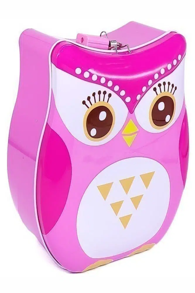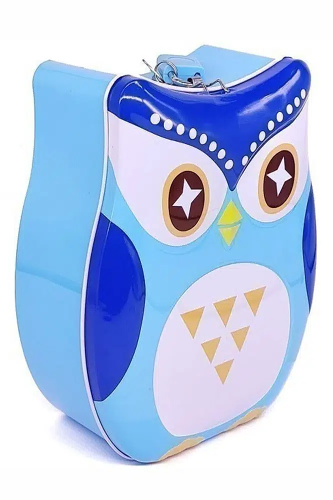 Ürün Adı: Metal Kumbara Baykuş Anahtarlı 1 Adet Kilitli Baykuş Figürlü Kilitli Metal Kumbara 14x17cm