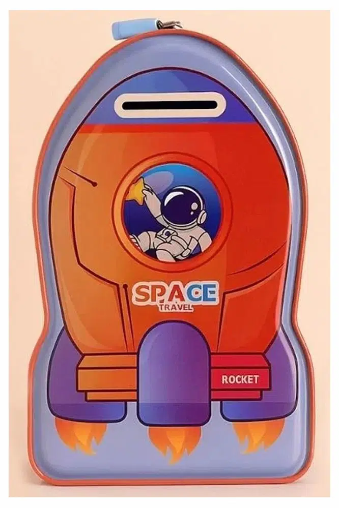 Ürün Adı: Artlantis Metal Kumbara Roket Anahtarlı 1 Adet Kilitli Astronot Roket Uzay Mekiği Figürlü Kilitli Metal Kumbara 13x19cm
