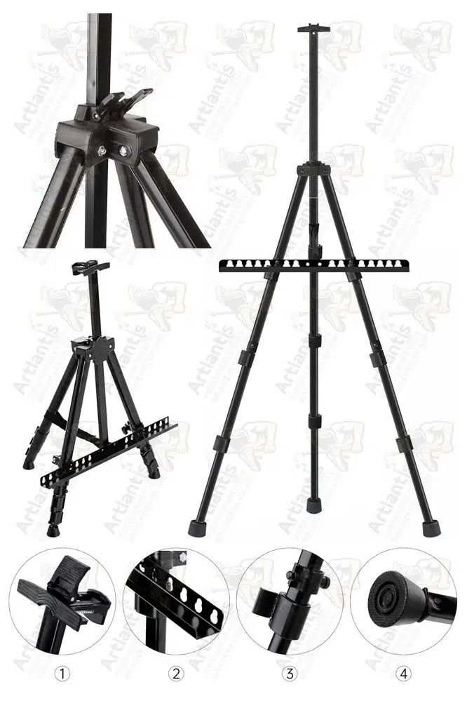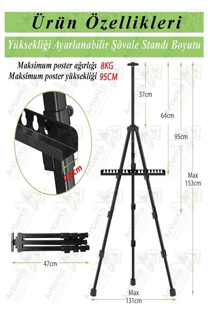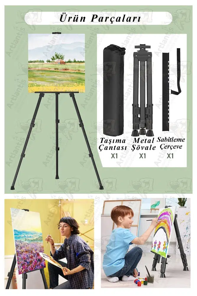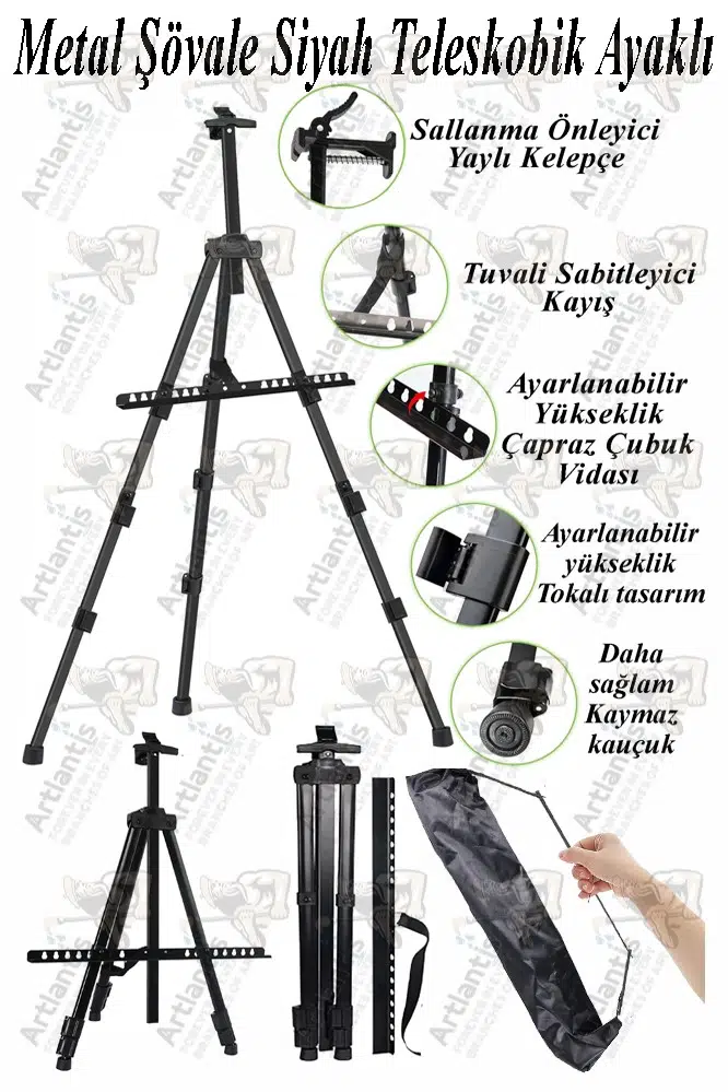 Ürün Adı: Metal Şövale 1 Adet Siyah Teleskopik Ayaklı Çantalı Resim Şövale Portatif Ayarlanabilir Tripod Üç Ayaklı Alümünyum