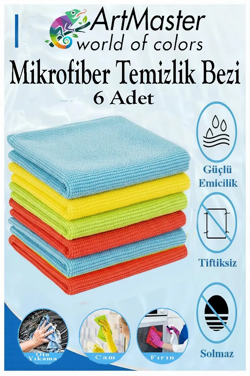 Ürün Adı: Artmaster Mikrofiber Temizlik Bezi 6 Adet Renkli Mikrofiber Bez 40x40cm Mutfak Bezi Kurulama Bezi Cam Bezi Leke Tutmaz İz Bırakmaz
