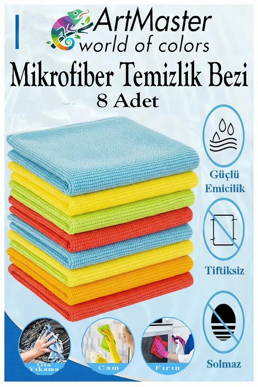 Ürün Adı: Artmaster Mikrofiber Temizlik Bezi 8 Adet Renkli Mikrofiber Bez 40x40cm Mutfak Bezi Kurulama Bezi Cam Bezi Leke Tutmaz İz Bırakmaz