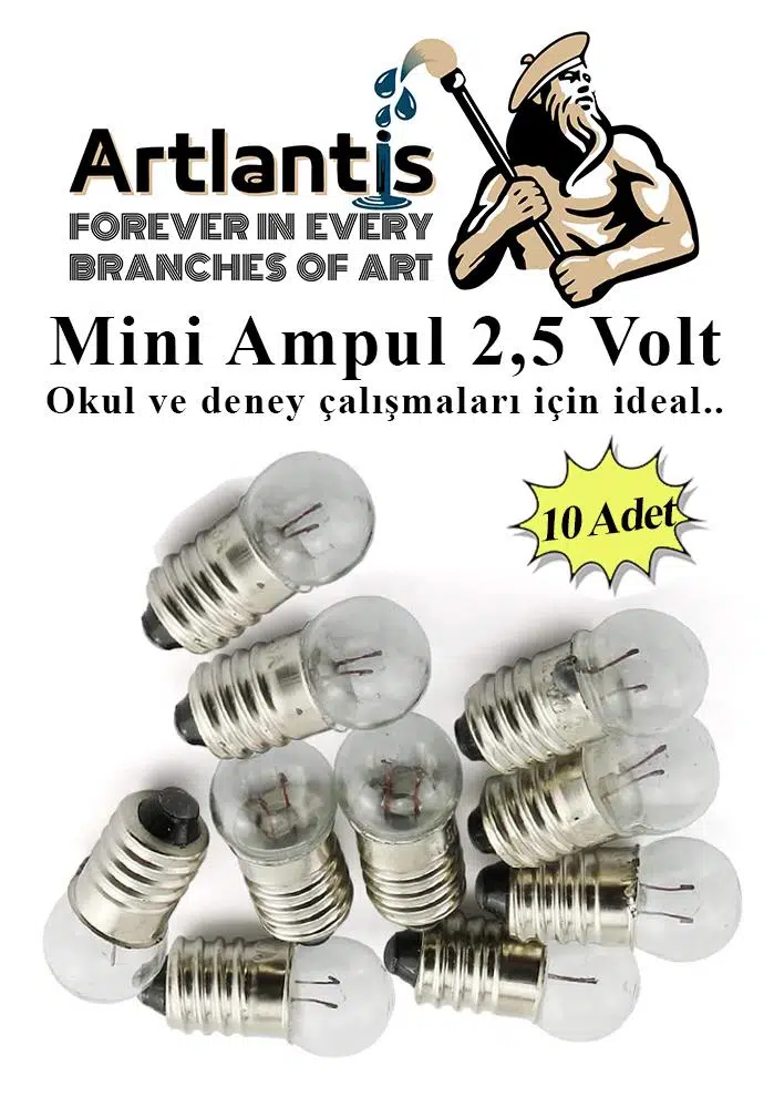 Ürün Adı: Mini Ampul 2,5 Volt 10 Adet 1 Paket Küçük Elektrik Deney Ampulü 2.5 v Okul Sınıf Elektrik Devre Deney Ampulü