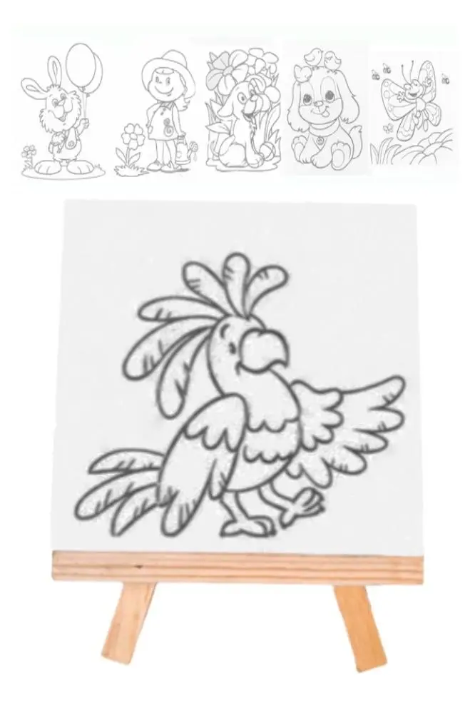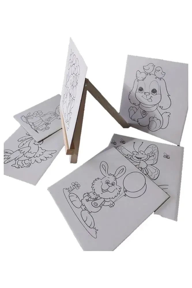 Ürün Adı: Mini Boyama Seti 6 Farklı Model 15x15cm Kompozit Plaka 6 Renk Akrilik Boya Mini Şövale Seti Fırça