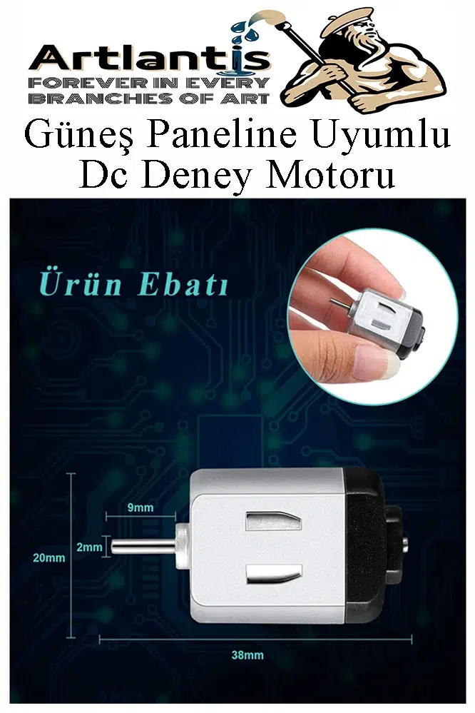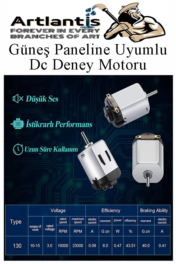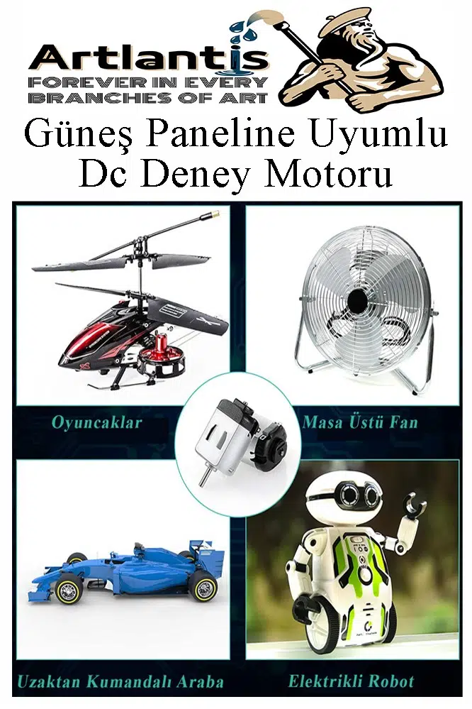 Ürün Adı: Artlantis Mini Solar Motor 1 Adet Varistor Dc Motor Güneş Paneline Uyumlu Motor 3 Volt Deney Okul Proje Hobi Yüksek Devirli