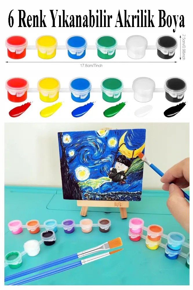 | Etiketler | Mini Şövale 15x15 cm Tuval 3 ml Akrilik Boya 6 Renk ve Fırça 2 Adet 15x15 Mini Tuval Masaüstü Küçük Şövale Boyama Seti |