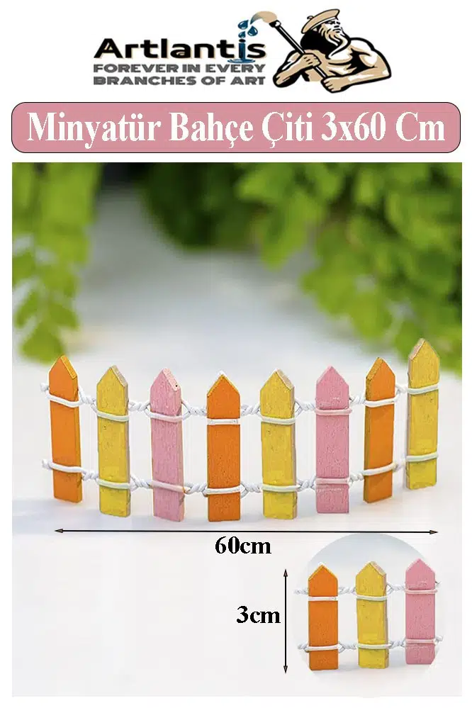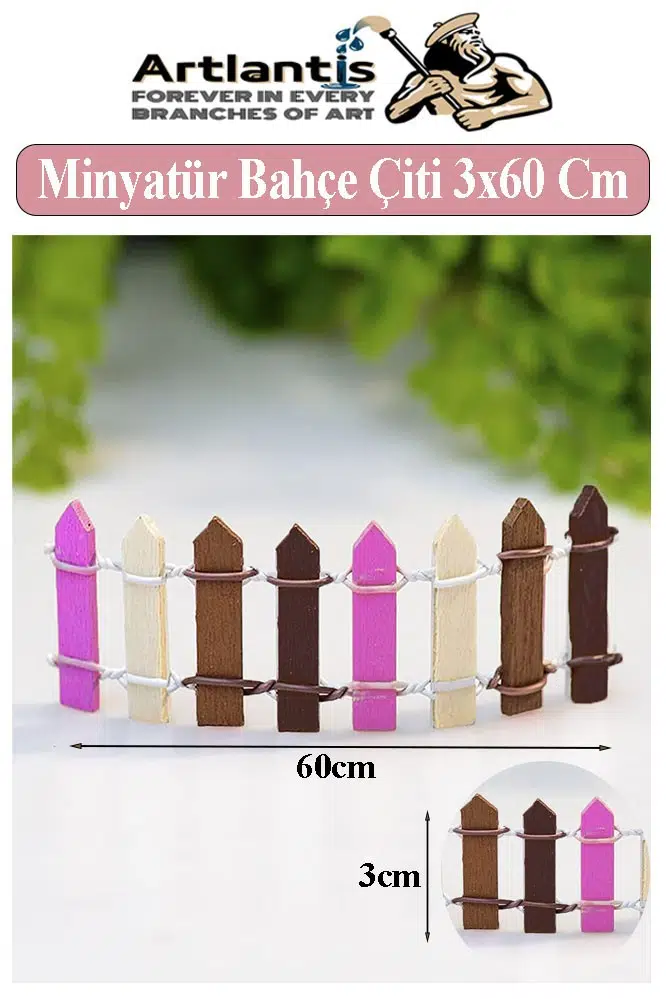 Ürün Adı: Artlantis Minyatür Renkli Bahçe Çiti 3x60 cm 1 Adet Mini Bahçe Çit Teraryum Okul Proje Ev Çit Renkli Ahşap Çit