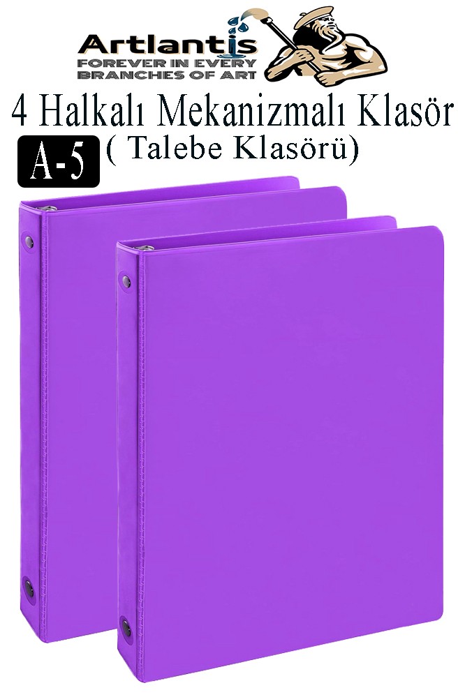 Ürün Adı: Açık Mavi 4 Halkalı Klasör 2 Adet A5 PVC Öğrenci ve Ofis Tipi Evrak Sunum Klasörü İç Cepli Otomatik Mekanizmalı Büro