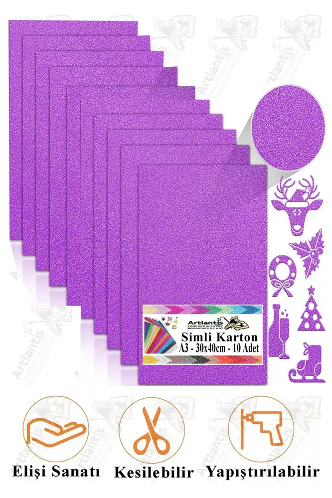 | Etiketler | Mor Simli Karton A3 30x40 cm 10 lu 1 Paket Simli Fon Kartonu Parıltılı Kağıt Anasınıfı Kreş Etkinlik Proje |