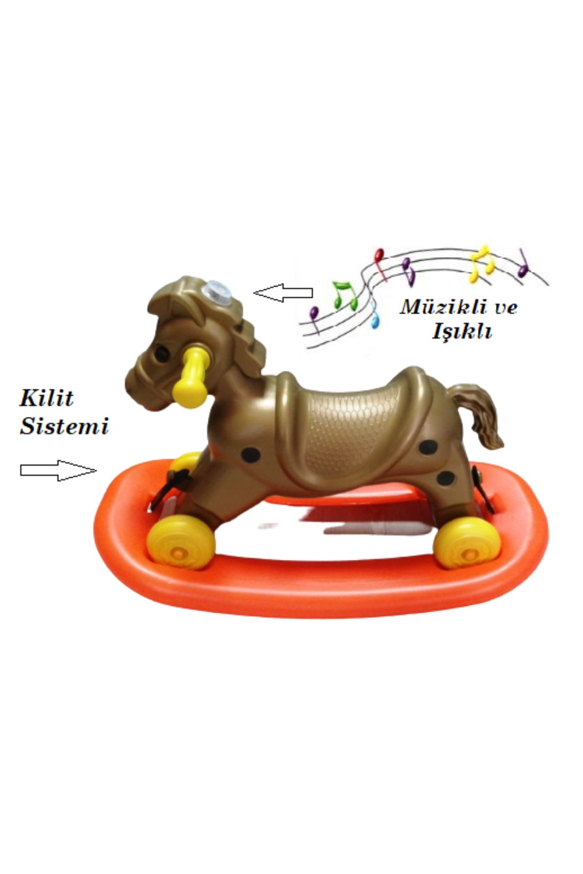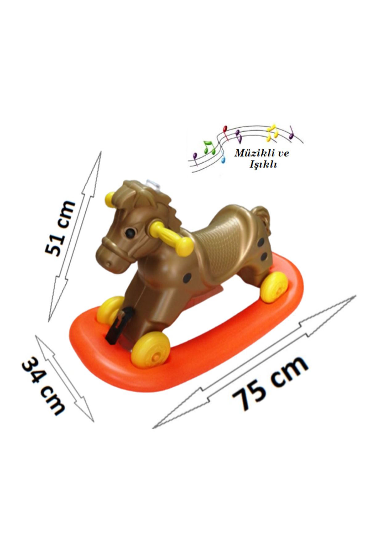 Müzikli ve Işıklı Sallanan At 4 Teker Altın Turuncu 1 Adet Artlantis Müzikli ve Işıklı Sallanan At