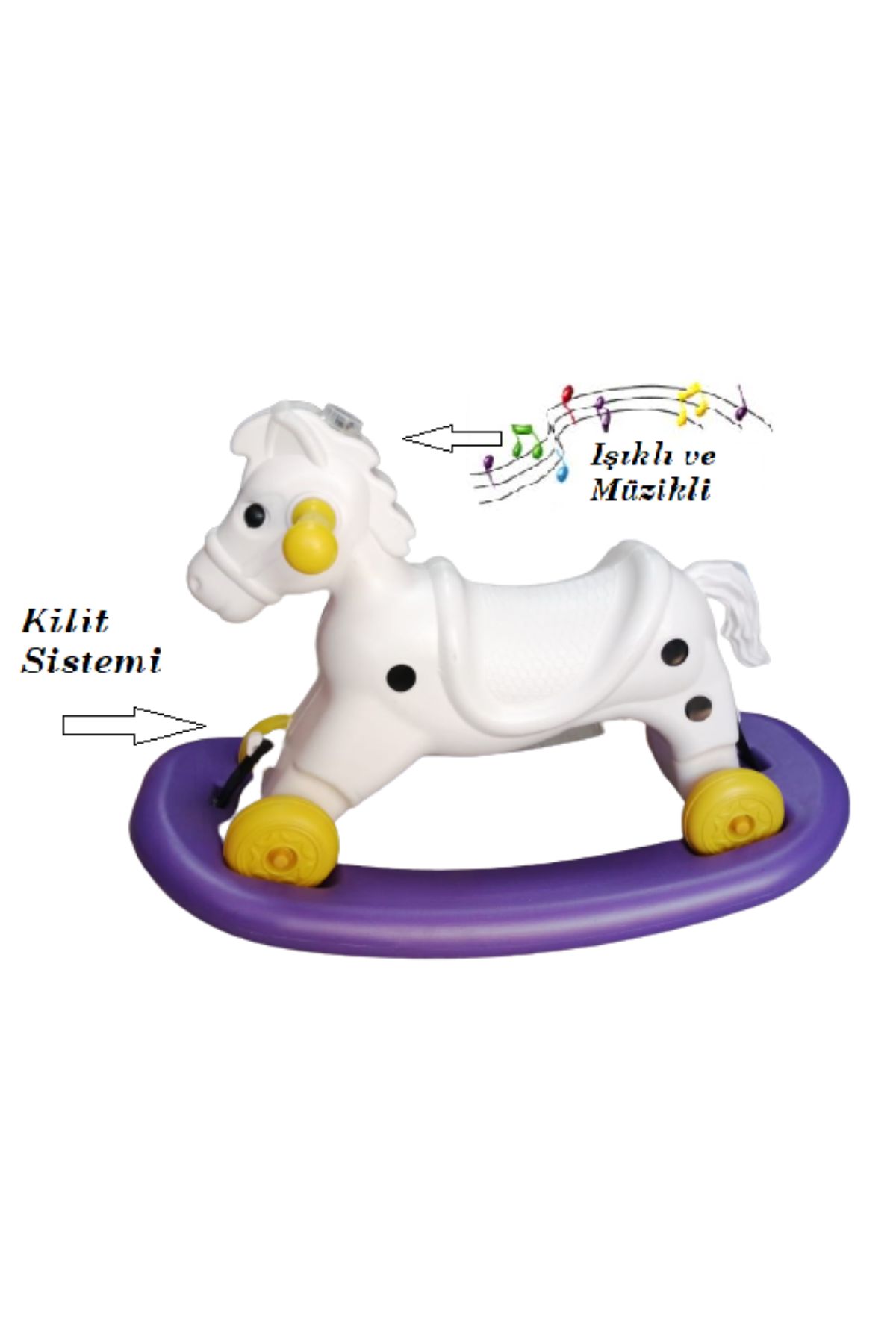 Müzikli ve Işıklı Sallanan At 4 Teker Altın Turuncu 1 Adet Artlantis Müzikli ve Işıklı Sallanan At