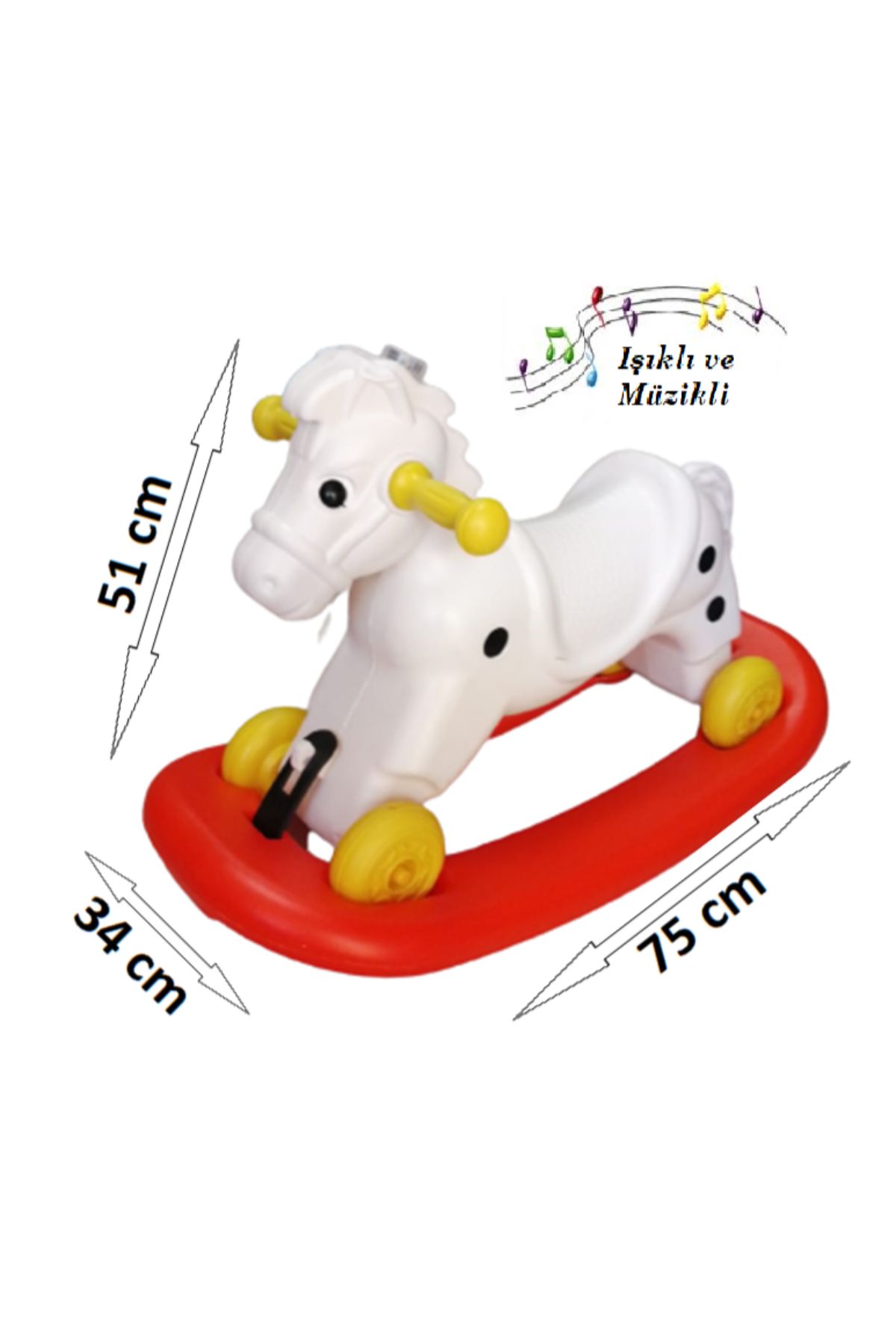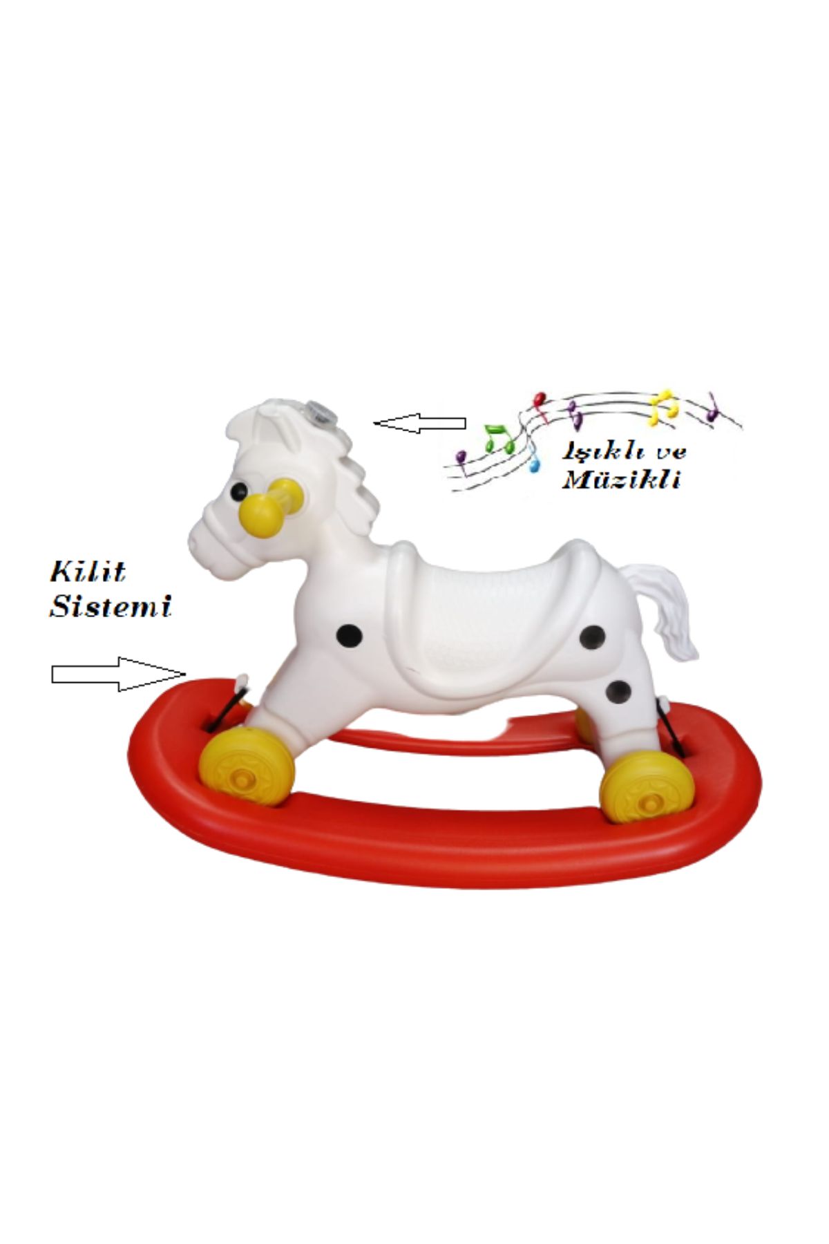 Müzikli ve Işıklı Sallanan At 4 Teker Beyaz Kırmızı 1 Adet Artlantis Müzikli ve Işıklı Sallanan At
